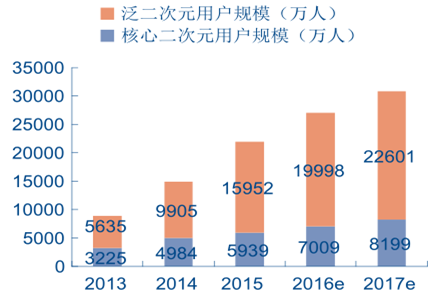 2013-2017 年中國二次元用戶規(guī)模