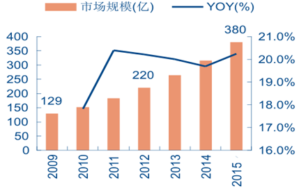 2009-2015 我國動(dòng)漫衍生品市場規(guī)模