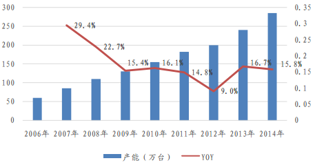 2006-2014年中國(guó)伺服電機(jī)產(chǎn)能