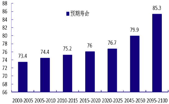 聯(lián)合國對(duì)我國預(yù)期壽命的預(yù)測(cè)