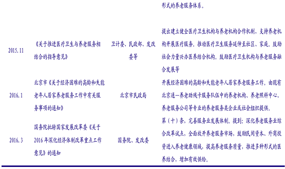(二)養(yǎng)老政策接連釋放,醫(yī)養(yǎng)結(jié)合帶來行業(yè)發(fā)展機(jī)遇