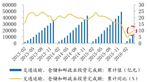 基建投資增速抬升勢(shì)頭明顯,近年前四月累計(jì)增速達(dá)19.73%,較前三月累計(jì)增速下滑0.37個(gè)百分點(diǎn)。 這幾個(gè)月高增長(zhǎng)一方面由于2015年9月開(kāi)始中央重心重回經(jīng)濟(jì)增長(zhǎng),上馬的眾多項(xiàng)目這個(gè)時(shí)點(diǎn)陸續(xù)到達(dá)施工環(huán)節(jié);另一方面由于2016年春節(jié)較晚,很多項(xiàng)目正式開(kāi)工時(shí)間在2月底或3月初。
