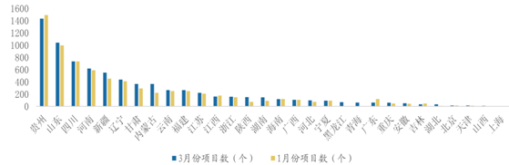 3 月末比1 月末新增項(xiàng)目數(shù)行業(yè)分布情況