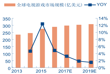 全球電視游戲市場(chǎng)規(guī)模(單位:億美元)