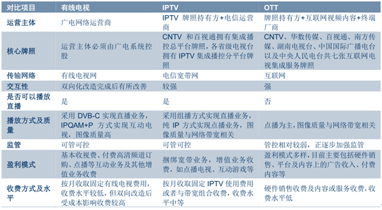 有線、IPTV、OTT 三者目前優(yōu)劣勢(shì)對(duì)比