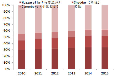 馬蘇里拉為最主要的天然奶酪消費品類