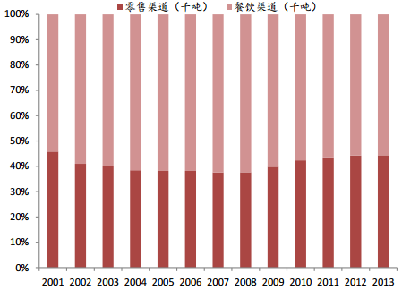 餐飲渠道占國內奶酪銷售量的 60%左右