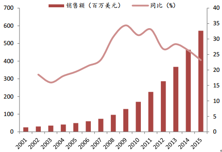 2008-2015年以后國內奶酪銷售額增速提升