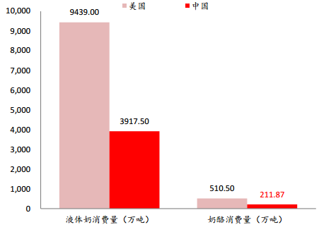 中美液態奶消費量比推斷國內奶酪市場