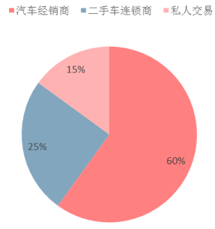 整個美國二手車市場,交易商主要分為三種渠道:汽車經銷商、二手車連鎖店、以及私人交易。其中以汽車經銷商為主,占市場份額 60%,二手車連鎖店份額為 25%,剩下得則是私人交易。