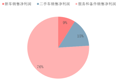 經銷商的主要業務分為三塊:新車、二手車、服務和備件,其收入占比分別為 56%,35%,9%,但三者的凈利潤占比分別為:9%,15%,76%,其主要凈利潤來自于服務和備件銷售。雖然主要利潤來自于服務和備件銷售,但這部分利潤卻不得不依賴于車輛的銷售。同樣是車輛銷售,每輛二手車的利潤大約是新車利潤的兩倍,且新車利潤逐年降低,二手車利潤卻逐年升高。