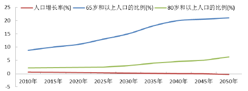根據聯合國秘書處經濟與社會事務人口處預測,到2040 年,預計中國50 歲以下人口數量將進一步減少,而60 歲和80 歲以上人口數量將大幅上升。超老齡人群(80 歲以上)數量預計將由2000 年的1,200 萬增至2030 年的4,000 萬以上。65 歲以上老年人數量將由目前的1.15 億激增至2030 年的2.4 億左右。