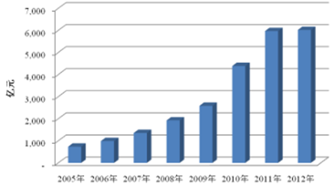 2005年以來國內工程機械行業工業總產值趨勢圖
