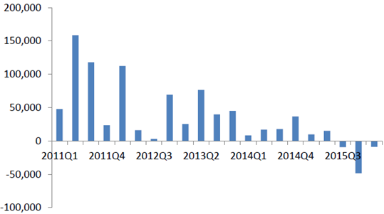 2011年-2016年稀土行業(yè)上市公司季度歸母凈利潤情況