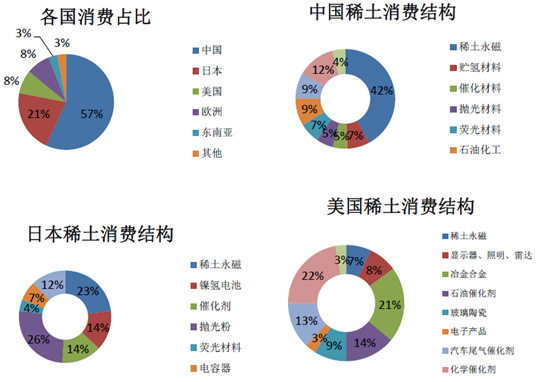 全球各國稀土消費占比及各國消費結(jié)構(gòu)