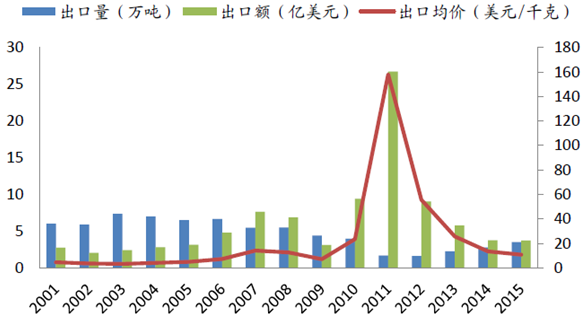 2001年-2015年中國稀土出口情況