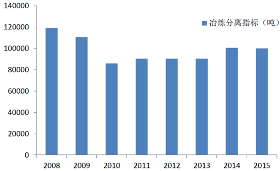 2008-2015年中國稀土冶煉分離指標(噸)