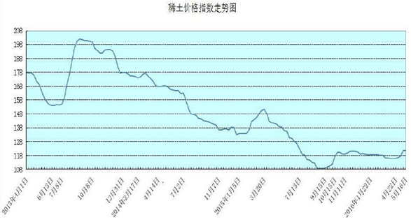 2013年-2016年稀土價格指數(shù)走勢