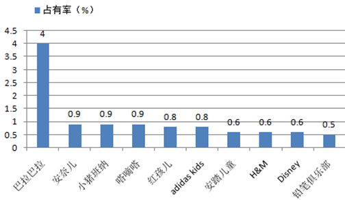 較低的市場集中度給各童裝品牌帶來了機會。由于還沒有形成完整的競爭格局,我國童裝市場目前品牌眾多,行業競爭激烈。除了眾多的專業童裝品牌外,隨著成人服裝市場趨于成熟以及童裝市場相對快速的增長,眾多國內外成人服裝品牌企業也紛紛加入戰場,加劇了行業競爭,形成了現在國內外眾多品牌混戰的局面。目前來看,國內童裝品牌占上風,在市占率排名前十的品牌中,有7個中國品牌,3個國外品牌,排名前五的全為中國品牌。