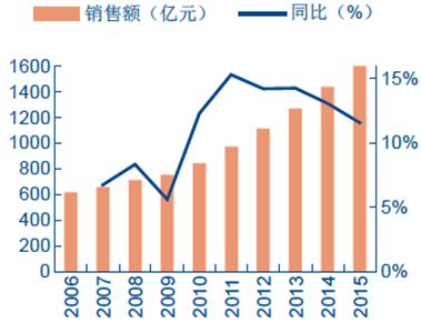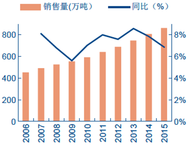 核心提示:烘焙行業全年銷售額1601 億元,同比增加11.57%,增速較2014 年下降1.53pcts;全年銷售量864 萬噸,同比增加6.87%,增速同比下降1pcts。總體而言,2015 年烘焙行業的銷售額從2010-2014 年14.22%的烘焙行業全年銷售額1601 億元,同比增加11.57%,增速較2014 年下降1.53pcts;全年銷售量864 萬噸,同比增加6.87%,增速同比下降1pcts。總體而言,2015 年烘焙行業的銷售額從2010-2014 年14.22%的復合增速高位有所回落,預計未來將維持10%以上的增長。下游短保拓展快,上游酵母業績佳。