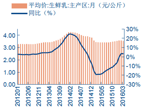 生鮮乳降價明顯,進口液態奶影響有限。據農業部定點監測,2016 年4 月20 日黑龍江、遼寧、內蒙古、河北等10 個奶牛主產省(區)生鮮乳平均價格為3.46 元/公斤,同比略有上升,我們判斷2016 年下半年原奶價格企穩,對全年綜合成本影響有限。進口奶方面,據美國農業部測算,2015 年我國進口液態奶40 萬噸左右,在整個液態奶3918 萬噸的國內消費量中占比1.19%,占比較上年提高0.17pcts,增速有所放緩。雖然近幾年進口液態奶增長迅猛,但整體占比很小,不足2%;加之國內部分乳企重新將配送要求較高的巴氏奶作為重點推廣產品,消費者更加注重品質和新鮮度,所以我們認為未來進口奶的沖擊將有限。