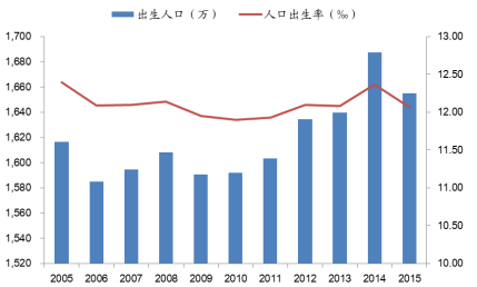2005-2015年人口出生率和每年出生人口數(shù)量