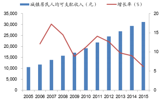 2005-2015年城鎮(zhèn)居民人均可支配收入