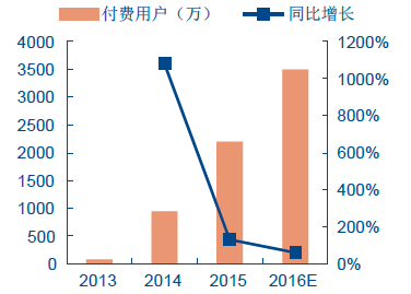 片名內地票房(億元)年份發行公司制作公司大圣歸來9.472015聚合影聯燕城十月/橫店熊出沒之雪嶺熊風2.962015樂視/珠江/卡通先生深圳華強/優揚傳媒熊出沒之熊心歸來2.882016樂視/珠江深圳華強/卡通先生熊出沒之奪寶熊兵2.472014樂視/珠江深圳華強/卡通先生喜羊羊與灰太狼之開心闖龍年1.662012上海東方原創動力喜洋洋與灰太狼之兔年頂呱呱1.52011上海東方原創動力喜羊羊與灰太狼之虎虎生威1.282010上海東方原創動力喜羊羊與灰太狼之喜氣羊羊過蛇年1.252013上海東方原創動力十萬個冷笑話1.22015萬達/上海炫動有妖氣/上海炫動喜羊羊與灰太狼之牛氣沖天0.92009上海東方原創動力4、從媒介的角度來看,中國的ACGN群體是與網絡建設同步成長起來的一代,因此其交互的社群對于網絡媒介有著極高的依存度。物聯網/移動互聯網為代表的新媒體的崛起,對于內容產業的沖擊是多方面的。一方面,截至2015年底,我國網絡視頻的用戶數目已經達到5.04億人;付費用戶規模首破2200萬,同比增長132.80%。視頻網站已經成為影視內容消費和影視IP變現的重要戰場之一,且持續變現出強大的生命力。