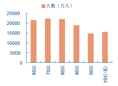 1、20世紀80年代-90年代第三次出生人口高峰為我國帶來了約4億的消費群體,占到全國人口總量的近30%。當前,這部分消費者的年齡在15-35歲,處于娛樂消費和文化表達極其活躍的人生階段。經濟實力和社會話語權的提升,使得這一群體的需求偏好將成為左右未來5年消費和投資市場關注的焦點。