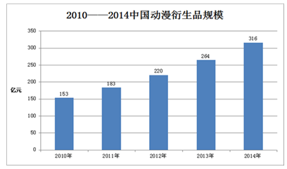 2010-2014年中國動漫衍生品規模增長情況