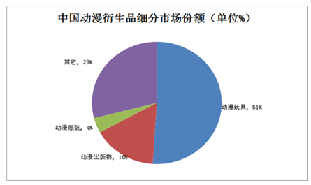 2010-2014年中國動漫衍生品細分市場份額示意圖