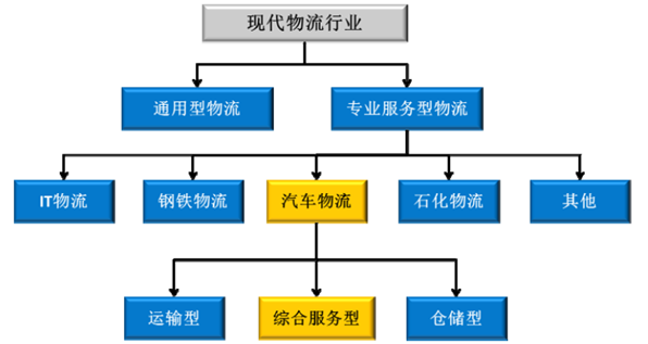 按照服務對象的不同,物流企業可以分為通用型物流企業和專業服務型物流企業。前者可以提供跨行業的物流服務,涉及物流產品的種類較多;后者則是基于某行業產品的特性,提供專業的物流服務,如汽車物流、IT 物流、鋼鐵物流、石化物流等。公司為專業服務型物流企業,服務對象主要為汽車制造企業,歸屬于汽車物流行業。根據國家質檢總局和國家標準委員會聯合發布的《物流企業分類與評估指標》(GB/T18354),按照業務類型的不同,物流企業又分為三類:運輸型、倉儲型和綜合服務型。