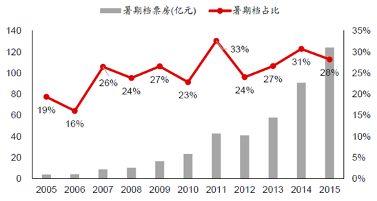 過去5年中暑期檔票房在全國票房的占比集中在25%-33%的區間內,因此今年暑期檔的票房表現將直接決定全年整體票房能否超預期。目前已經公布的暑期檔片單中大片云集,包括《魔獸》、《爵跡》、《盜墓筆記》都有沖擊20億票房的可能,而剩下的如《微微一笑很傾城》、《大魚•海棠》等也能提供多樣類型的補充。