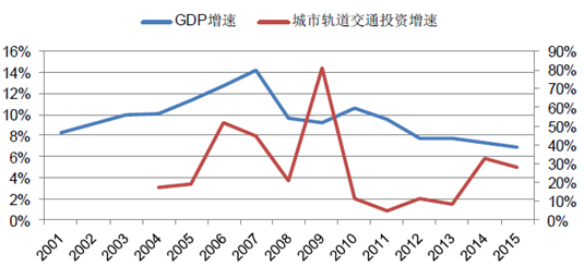 GDP增速和城軌投資增速