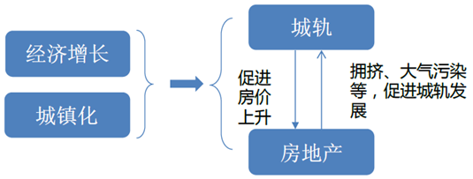 經濟的發展加上城鎮化的推進促進了房地產的發展,而房地產的發展導致居住人口多,造成交通擁擠,空氣質量差等一系列城市病,這時,城市軌道交通憑借快速、節能、環保的特性對現代化城市公共交通的重要性日益凸顯,其需求也不斷擴大。正是因為城市的發展、房地產的發展因而形成了城軌的需求和發展。