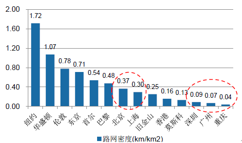 全球主要城市路網密度比較
