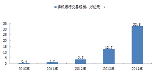 核心提示:隨著近年來智能手機的廣泛應用,手機銀行交易量迅速增加。2014年手機銀行交易規模高達32.8萬億元,同比增長157.1%。2010-2014年中國手機銀行交易規模:萬億元根據相關數據顯示,2015年第4季度,中國手機銀行客戶交易規模達到隨著近年來智能手機的廣泛應用,手機銀行交易量迅速增加。2014年手機銀行交易規模高達32.8萬億元,同比增長157.1%。