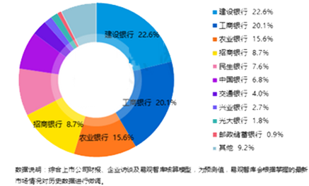 在2015年第4季度中國手機銀行市場格局中,建設銀行以22.6%的市場份額占據第一位,工商銀行以20.1%的份額尾隨其后,農業銀行位居第三,市場份額為15.6%,招商銀行、民生銀行則分別以8.7%和7.6%的份額排在第四、第五位。