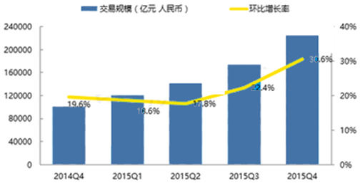 2014年Q4-2015Q4中國手機銀行客戶交易規模