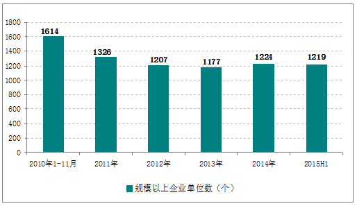 2010-2015年上半年我國電池制造行業(yè)規(guī)模以上企業(yè)數(shù)量分析