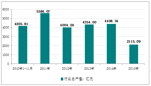 2015年上半年我國電池制造行業(yè)規(guī)模總資產(chǎn)達(dá)到3518.45億元,較上年同期增長10.12%。行業(yè)總產(chǎn)值為2115.09億元,較上年同期增長0.8%。