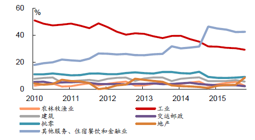 各國工業增加值占GDP比重