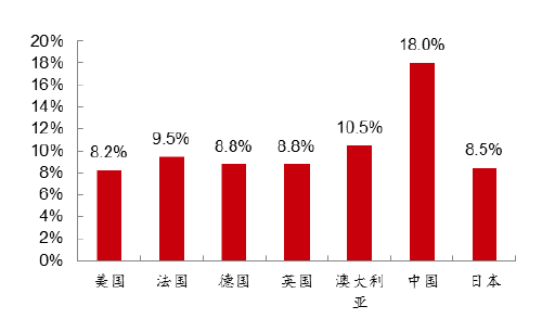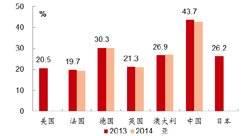 2014年各國物流總費用占GDP比重