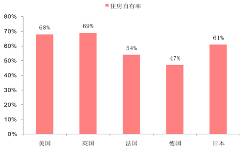 根據(jù)歷年人口普查的數(shù)據(jù)推算,2000 年我國住房租賃比例僅有 20.55%,到 2010 年我國住房租賃比例僅上升了 0.5 個百分點,達 21.05%,我國住房自有率也常年維持在 70%以上的水平,遠高于西方發(fā)達國家。我國主要是通過自建房屋和購買商品房的形式來滿足居民的住房需求,而相對經(jīng)濟較為發(fā)達的美國、英國、法國、德國和日本,其住房自有率分別在 50-70%左右,其中德國更是在 50%以下, 大部分人群以租賃為主要的居住方式。