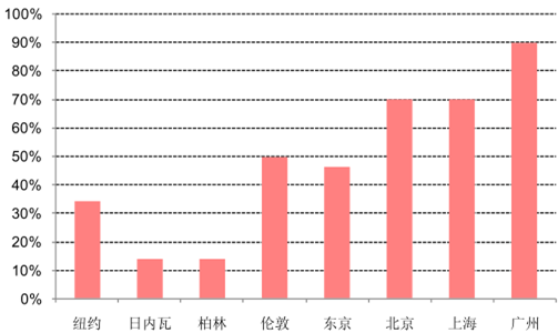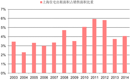 根據(jù)國家發(fā)達國家經(jīng)驗,城市經(jīng)濟越發(fā)達,其房價水平越高,帶來的購房壓力相應越大,租房就成為居民滿足居住需求的主要途徑。紐約的住房自有率近年來約維持在 30%到 35%的水平,而日內(nèi)瓦和柏林其住房自有率僅有不到 15%的水平, 租賃住房成為這些區(qū)域主要的生活方式, 而上海 2014 年住宅出租面積僅達 72.16 萬平,僅占當年住宅銷售面積的 4%,住房自有率水平高達 70%,反映出國內(nèi)住房租賃市場發(fā)展的滯后和緩慢。