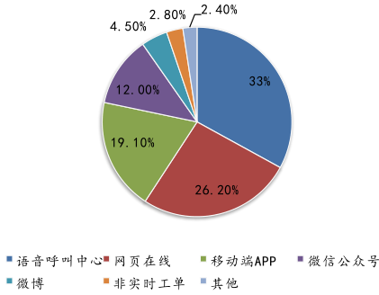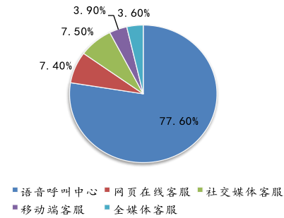 中國現(xiàn)有的客服以傳統(tǒng) PC 客服和電話客服為主,智能化、多渠道、個(gè)性化客服少。2015 年語音呼叫中心占整體 SaaS 客服市場比重高達(dá) 77.6%,社交媒體、移動(dòng)端、全媒體客服占比少;從用戶對客服形式偏好來看,移動(dòng)端、微信公眾號(hào)、微博等客服形式需求占比相對較高,客戶的需求與目前市場上的客服形式類別存在一定的供給空白,SaaS 客服形式具有強(qiáng)勁的市場發(fā)展?jié)摿Α?/p>