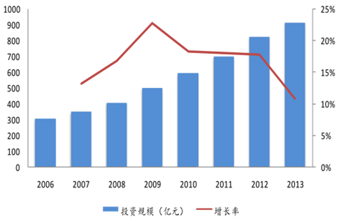 2006-2013 中國呼叫中心累計(jì)投資規(guī)模