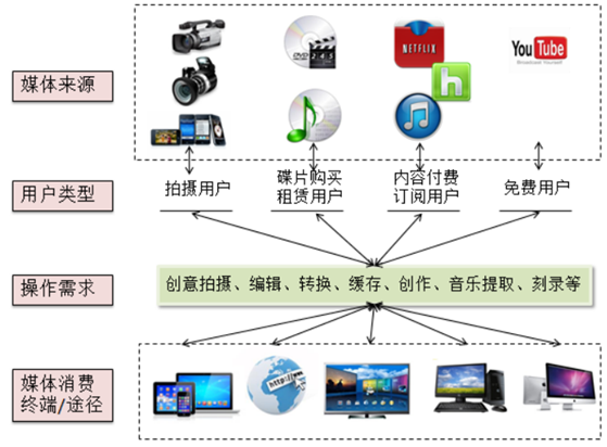 數碼相機、 數碼攝像機以及自帶攝像頭的移動智能設備等數碼影像設備價格回落、快速普及,多媒體內容的生成、創作人群范圍迅速擴展,呈大眾化、多元化的特點,互聯網的發展帶動了人們對多媒體內容創作、分享、播放的欲望。多媒體來源的多樣化和多媒體創作、分享需求的增長,推動了多媒體格式和功能的多樣化,從以播放功能為主,向制作、編輯、轉換、分享、發布等功能轉變。