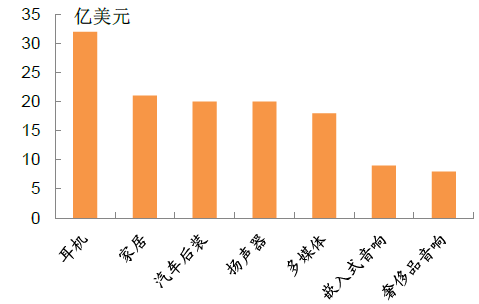 從硬件的角度來看,汽車音響也是重要的收入和利潤來源。據數據,2013 年全球多媒體音箱市場約18 億美元,僅汽車后裝市場即達20 億美元,耳機則高達32 億。汽車音響是汽車信息娛樂系統的重要組成部分,遍布汽車座椅周邊、控制臺、車頂等位置。隨著汽車的功能多樣化、互聯化以及智能化,信息娛樂系統也迎來了不斷升級發展的機會,同時也可以預見車載音響的功能將更為豐富,其價值量有望提升。