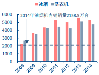 核心提示:1、煙灶產品市場規模從居民家庭每百戶保有量水平看,煙灶產品與冰箱、洗衣機消費習慣類似,每戶均只購置一臺,具有可比性,且相關數據表明,煙灶保有量長期來看與冰洗基本相當。截至2014年,油煙機城鎮家庭每百戶保有量為68.2臺,農村家庭為131、煙灶產品市場規模